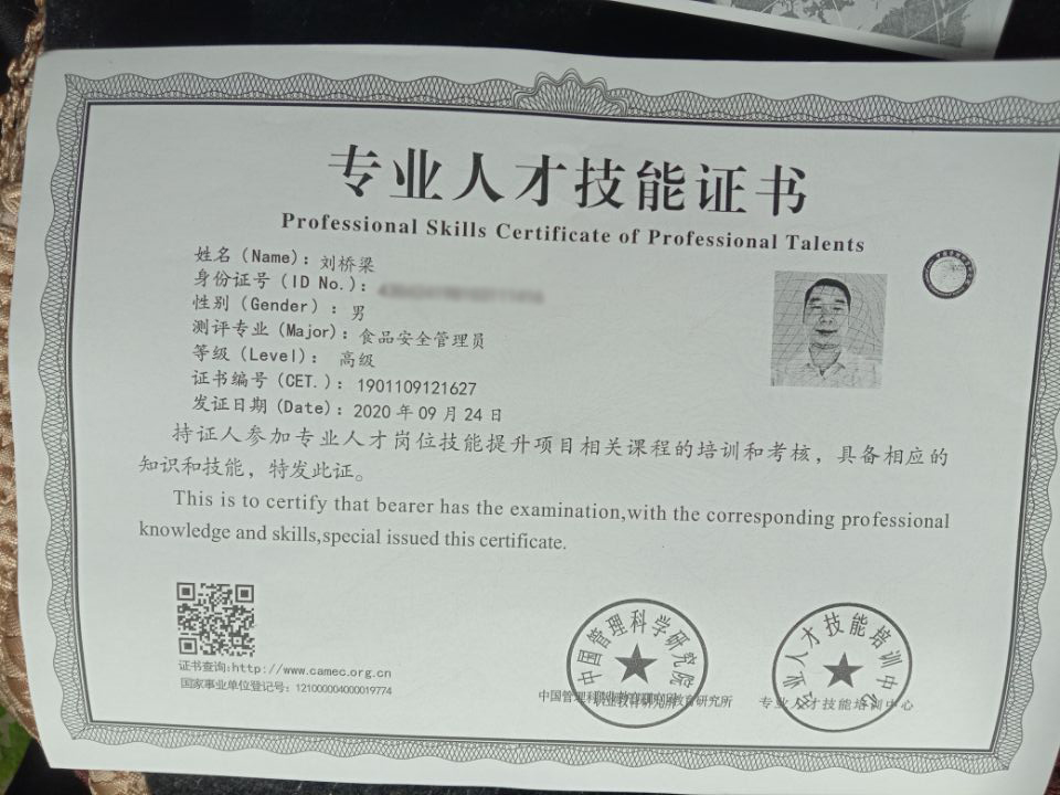 • 食品安全管理體系認(rèn)證證書